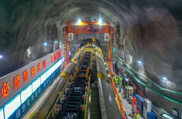“天岳號”總長87米、總重約900噸。施工作業(yè)時,“天岳號”沿50度大傾角由下斜井往上爬行掘進,在中平洞實現(xiàn)6.53米和8米變徑,最終從上斜井駛出,可實現(xiàn)兩級引水斜井全斷面連續(xù)開挖、初支一次成型。此次“天岳號”成功應用,有助于我國抽水蓄能電站綠色智能建造。