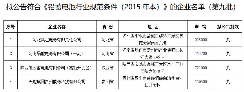 3.擬公告符合《鉛蓄電池行業(yè)規(guī)范條件(2015年本)》企業(yè)信息變更名單(第四批)