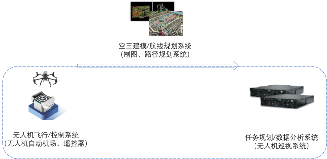 江行智能無(wú)人機(jī)智能巡視系統(tǒng)主要由無(wú)人機(jī)飛行/控制系統(tǒng)、空三建模/航線規(guī)劃系統(tǒng)、任務(wù)規(guī)劃/數(shù)據(jù)分析系統(tǒng)三大部分組成,通過(guò)采集現(xiàn)場(chǎng)圖片、建立現(xiàn)場(chǎng)模型、規(guī)劃巡視航線、配置算法/點(diǎn)位、制定飛行計(jì)劃,進(jìn)而定時(shí)下發(fā)飛行任務(wù),完成數(shù)據(jù)分析、報(bào)告、消缺等任務(wù)。