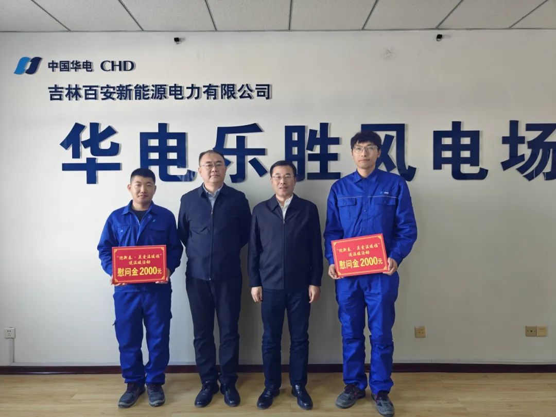 寒冬送暖,歲末傳情。1月22日,在新春佳節(jié)即將來(lái)臨之際,華電吉林公司黨委書記、執(zhí)行董事孫毅到樂(lè)勝風(fēng)場(chǎng)走訪慰問(wèn)困難黨員及堅(jiān)守崗位的生產(chǎn)一線員工,送去溫暖關(guān)懷和新春祝福,并開展節(jié)前安全檢查。公司黨委委員、副總經(jīng)理孫浩參加走訪慰問(wèn)。