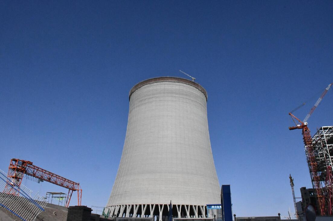 甘肅電投常樂(lè)電廠項(xiàng)目超大型自然通風(fēng)間接空冷冷卻塔設(shè)計(jì)屬國(guó)內(nèi)一流。四號(hào)塔身零米直徑為163米,塔高215米,進(jìn)風(fēng)口高度29米,進(jìn)風(fēng)口直徑143.8米。由基礎(chǔ)、X柱、環(huán)梁、塔筒等部分組成,于2021年7月上旬開(kāi)工,X柱采用清水混凝土澆筑,整體澆筑共使用87753立方米混凝土,到頂后的間冷塔筒壁內(nèi)實(shí)外光、曲線流暢、模板接茬平整。塔筒為雙曲線形現(xiàn)澆鋼筋混凝土殼體結(jié)構(gòu),這種設(shè)計(jì)有效解決了瓜州縣大風(fēng)地區(qū)間冷塔設(shè)計(jì)和運(yùn)行等技術(shù)難題。