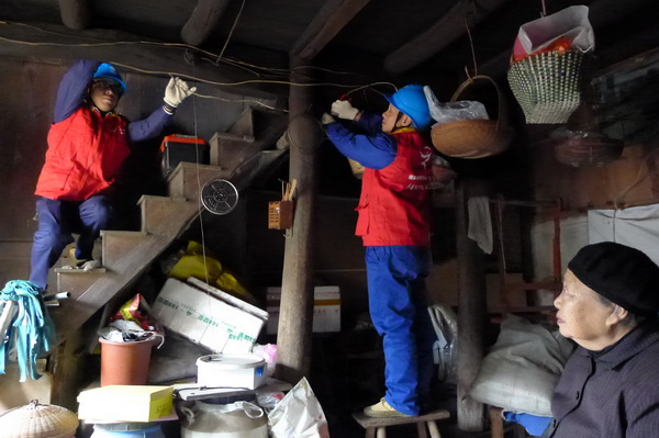 隨著寒冬的來臨,寧??h山區(qū)農(nóng)村的孤寡老人和有疾老人、空巢老人面臨著冬季用電的安全問題。房子老、線路舊就像一顆“定時炸彈”,給老人帶來了生活用電危險。為此,國網(wǎng)寧海縣供電公司組織紅船共產(chǎn)黨員服務(wù)隊開展了為期2個月的“陽光暖燈”行動。
