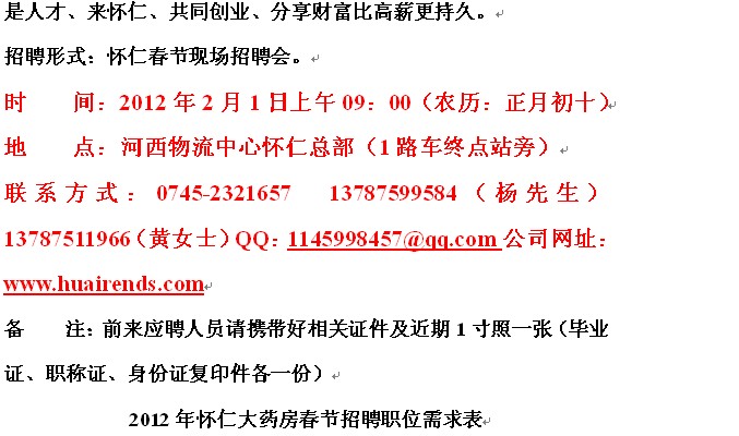 2012年懷仁大藥房春節(jié)招聘會(huì)計(jì)劃