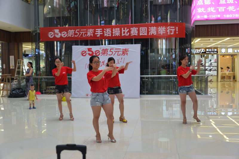 懷化第五元素網(wǎng)絡(luò)信息有限公司于7月30日下午16:00在懷化國(guó)際商貿(mào)城舉辦了手語(yǔ)操比賽。本次參賽的隊(duì)伍有技術(shù)部、電商部(懷化購(gòu))、懷化人才網(wǎng)、大客戶(hù)部與客服部,還有蜂窩窩隊(duì)的友情演出。