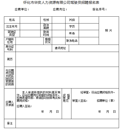 附件:懷化市華奕人力資源有限公司公開招聘駕駛員報(bào)名表
