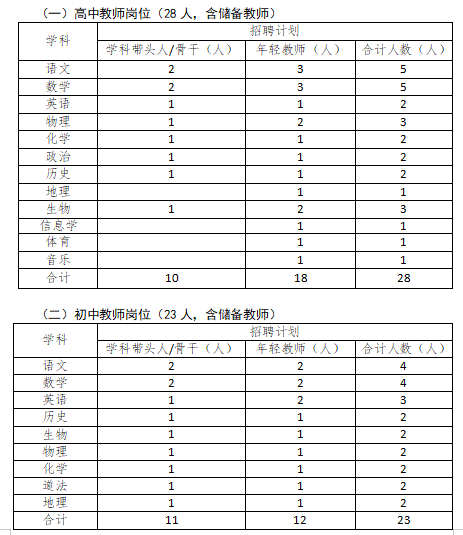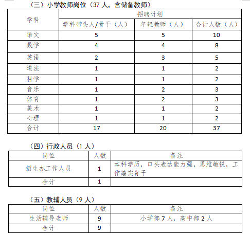 優(yōu)秀教師和行政崗位招聘計(jì)劃