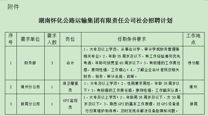 附件:湖南懷化公路運輸集團有限責(zé)任公司2023年社會招聘計劃