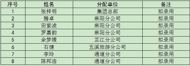 根據(jù)《湖南懷化公路運輸集團有限責任公司招聘公告》的要求,經(jīng)報名、資格審查、筆試、面試、體檢等程序,擬錄用以下人員,現(xiàn)予以公示。公示期間如對擬錄用人員有異議或有其他問題,請以書面形式并署真實姓名和聯(lián)系方式,及時向湖南懷化公路運輸集團有限責任公司紀檢監(jiān)察部門反映。材料郵寄(送達)地址:懷化市鶴城區(qū)迎豐西路238號(懷運集團紀檢監(jiān)察室),經(jīng)公開調查核實,如果公示對象存在影響錄用問題的將取消錄用資格。