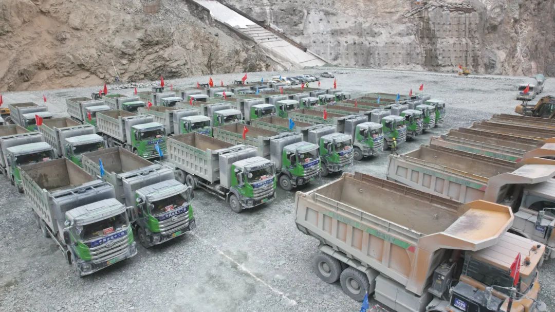 為建設生態(tài)環(huán)保大壩,項目團隊開創(chuàng)性地在高原寒冷地區(qū)大規(guī)模使用新能源自卸車運輸填筑壩料,截至目前已投入近90臺新能源自卸車、建成3座新能源充換電站,并對所有自卸車進行智能化改造,全面提升壩料運輸效率、降低整體管理成本。新能源自卸車的大規(guī)模使用使大壩填筑全過程可累計減少二氧化碳排放量6.4萬噸,為國內水利水電行業(yè)在高原寒冷地區(qū)筑造更多標志性工程探索出了“降本增效、低碳環(huán)保”新路徑。
