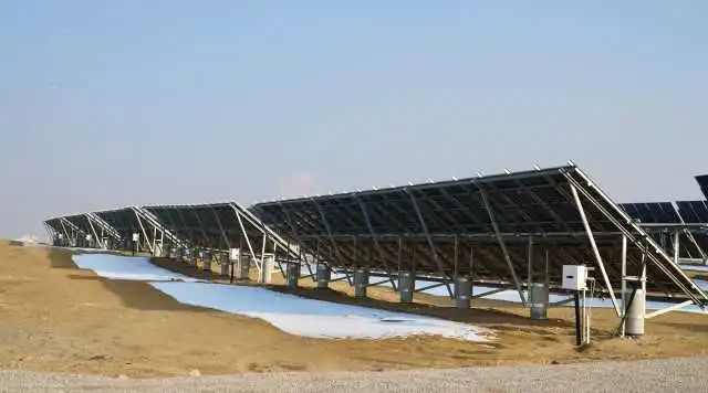 一望無際的光伏發(fā)電板在陽光照射下,像向日葵一樣隨著太陽的位置自動轉動。“這是采取跟蹤光伏技術,能最大化利用太陽光能。”隆基清潔能源西北區(qū)域總經(jīng)理劉興兵告訴記者,該電站采用隆基最新單晶雙面半片組件等設備及智能運維技術,可實現(xiàn)每年發(fā)電36789.85萬千瓦時,相比傳統(tǒng)的固定式支架單面組件發(fā)電模式,能增加近11%的發(fā)電量。