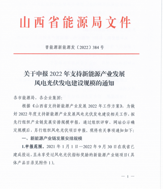 山西:10月21日前申報(bào)新能源產(chǎn)業(yè)鏈獎(jiǎng)勵(lì)指標(biāo)
