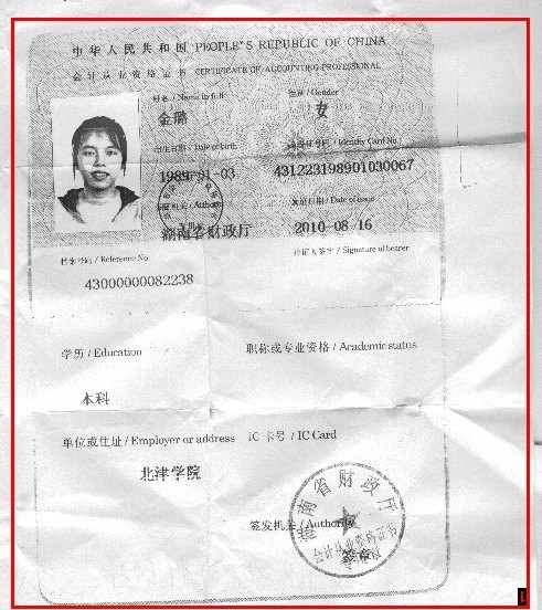 | 戶 口: 湖南省 懷化市 |