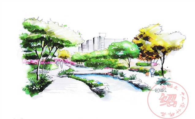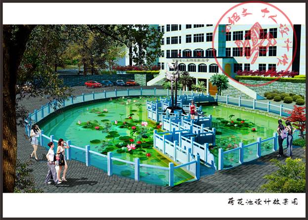 貴族民族高中改建方案效果圖 校園洼池改建荷花池 |