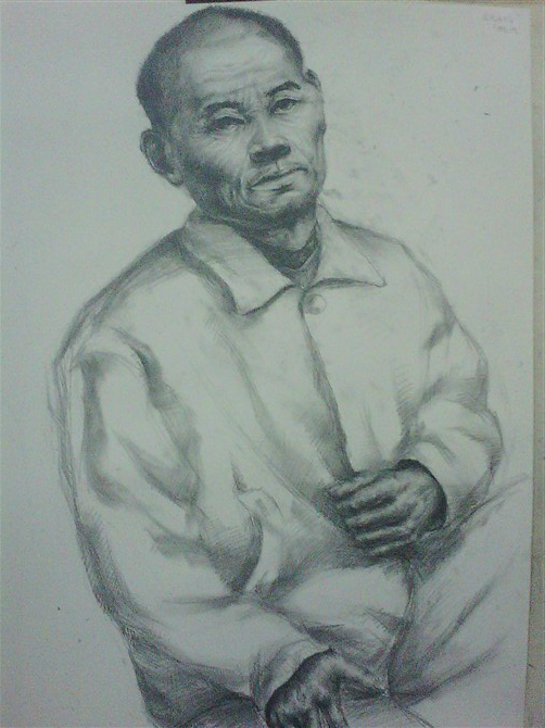 半身帶手的素描寫生,我將重點(diǎn)著重放在了頭和手,衣服簡單化了。 |