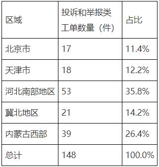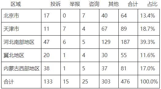 9月份投訴和舉報(bào)工單中,河北南部地區(qū)數(shù)量最多,占35.8%。投訴和舉報(bào)類工單按區(qū)域分布情況具體見表7。