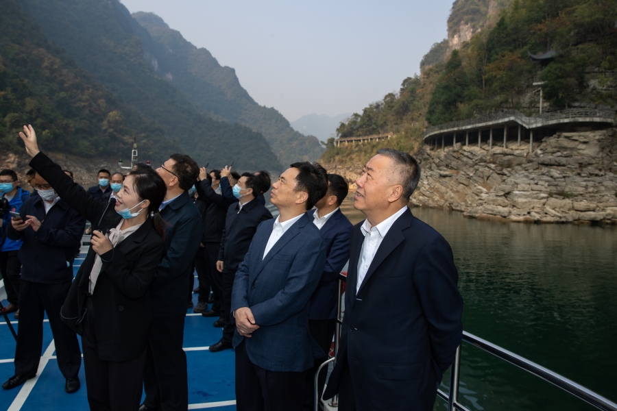 雷鳴山乘船考察隔河巖電站庫區(qū),調研清江水系連通及生態(tài)修復工程有關情況