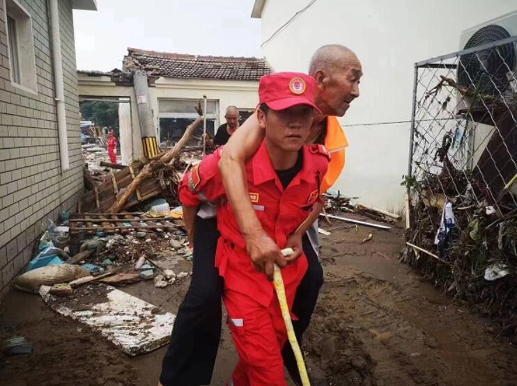 8月4日,北京門頭溝救援中,搶險(xiǎn)隊(duì)員毛平背起行動(dòng)不便老人奪門而出。