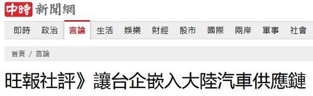 “全球車市重新洗牌!中國大陸新能源車迅速崛起。”臺灣“中時新聞網(wǎng)”、“聯(lián)合新聞網(wǎng)”、“TVBS新聞網(wǎng)”、“風(fēng)傳媒”等諸多媒體,不斷向臺灣民眾講述著大陸新能源車行業(yè)的發(fā)展。與此同時,島內(nèi)輿論對于產(chǎn)業(yè)合作也充滿期待。