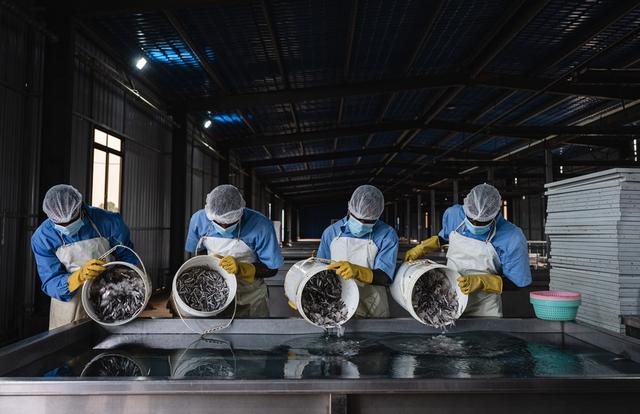 肯尼亞?wèn)|部沿海地區(qū)夸萊郡希莫尼鎮(zhèn)的水產(chǎn)品初加工廠里,當(dāng)?shù)貑T工正在熟練地處理漁民剛剛捕獲的新鮮鳀魚(yú)。經(jīng)過(guò)清洗、整理、煮制、晾曬后,處理過(guò)的魚(yú)干被送入冷庫(kù),等待漂洋過(guò)海出口到中國(guó)。
