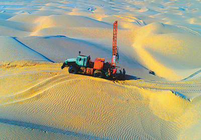 中石化地球物理公司物探隊伍在新疆塔克拉瑪干大漠深處進行油氣勘探,助力我國油氣供應(yīng)保障能力穩(wěn)步提升。