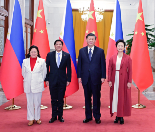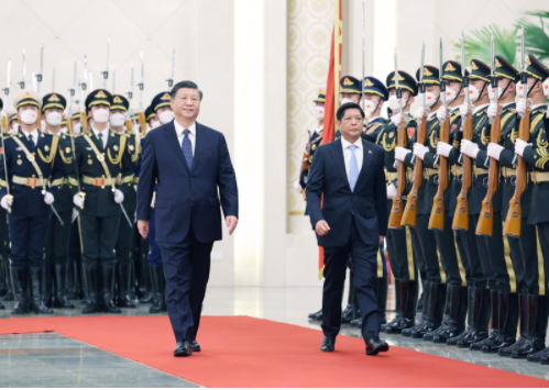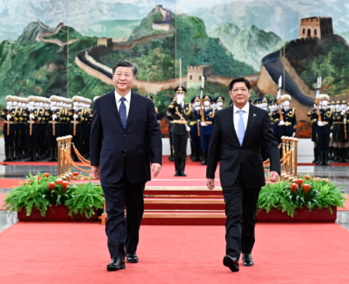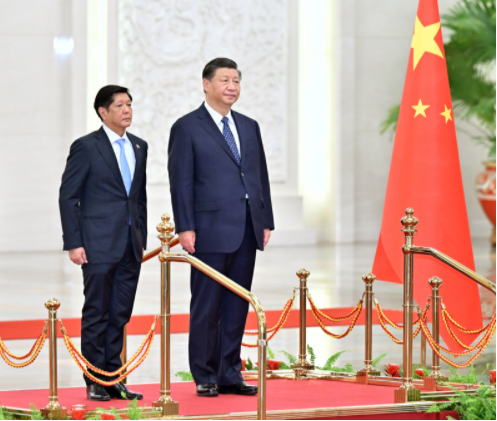 習(xí)近平歡迎馬科斯就任菲律賓總統(tǒng)后首次訪華。習(xí)近平指出,這是你首次正式訪問東盟以外國家,你也是今年中方接待的首位外國領(lǐng)導(dǎo)人。這充分體現(xiàn)了中菲關(guān)系的密切程度,也說明雙方在彼此外交格局中占有重要位置。中菲是一衣帶水的近鄰。在兩國上千年交往史上,以誠相待、守望相助始終是中菲關(guān)系主流,也是兩國人民共有的寶貴精神財(cái)富。48年前,你的父親同中國老一輩領(lǐng)導(dǎo)人洞察時(shí)局、順應(yīng)大勢,共同作出中菲建交的歷史性決定。此后近半個(gè)世紀(jì),無論國際風(fēng)云和菲律賓國內(nèi)政局如何變化,你和你的家族一本初衷,矢志推動中菲友好,這份情誼彌足珍貴。希望你這次訪華不僅是一次“懷舊之旅”,更是一次“開創(chuàng)之旅”。中方始終把菲律賓放在周邊外交優(yōu)先方向,堅(jiān)持從戰(zhàn)略和全局高度看待中菲關(guān)系。我愿同你保持經(jīng)常性戰(zhàn)略溝通,全面規(guī)劃雙邊關(guān)系下步發(fā)展,做互幫互助的好鄰居、相知相近的好親戚、合作共贏的好伙伴,為兩國人民帶來更多福祉,為地區(qū)和平穩(wěn)定貢獻(xiàn)更多正能量。