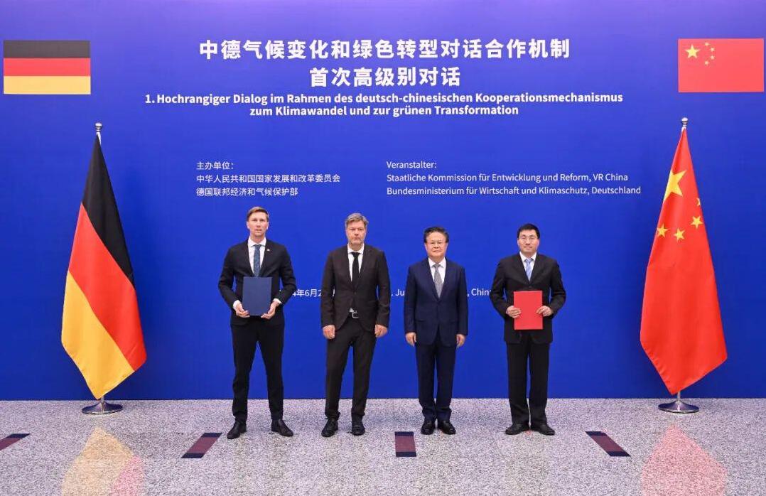 6月22日上午,國(guó)家發(fā)展改革委主任鄭柵潔在京會(huì)見(jiàn)德國(guó)聯(lián)邦副總理兼經(jīng)濟(jì)和氣候保護(hù)部部長(zhǎng)哈貝克,共同舉行中德氣候變化和綠色轉(zhuǎn)型對(duì)話合作機(jī)制首次高級(jí)別對(duì)話。中方國(guó)家發(fā)展改革委、外交部、工業(yè)和信息化部、生態(tài)環(huán)境部、交通運(yùn)輸部、人民銀行、國(guó)家能源局,江蘇省、四川省以及國(guó)家節(jié)能中心代表,德方聯(lián)邦經(jīng)濟(jì)和氣候保護(hù)部、外交部、環(huán)境部,德國(guó)聯(lián)邦議院、德國(guó)駐華使館,巴符州、北威州以及德國(guó)國(guó)際合作機(jī)構(gòu)代表參加對(duì)話。