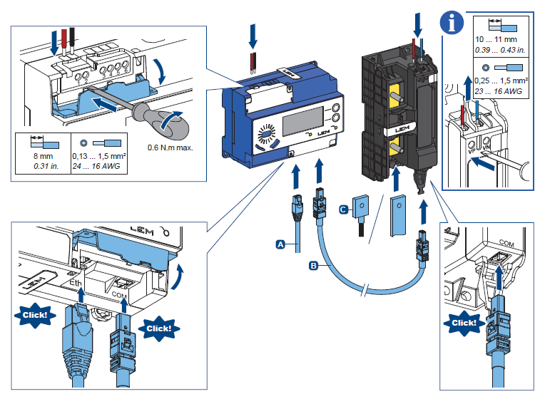 萊姆智能電表可裝在直流充電樁靠近輸出槍側(cè),或者充電終端內(nèi)。為應(yīng)對(duì)德國Eichrecht法規(guī)對(duì)于線損補(bǔ)償?shù)染_計(jì)量的要求,我們建議為每一條充電回路配備單獨(dú)的智能電表。
