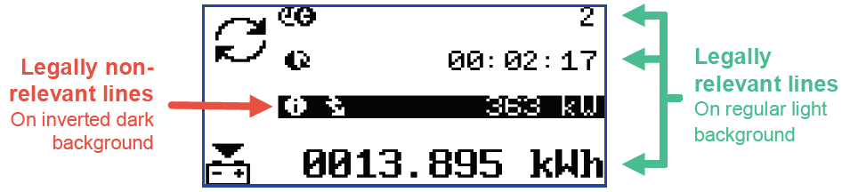 如圖5示例,紅色箭頭指示的字段,即黑底白字部分,顯示如連接線狀態(tài)、電表IP地址、本地日期,本地時(shí)間等內(nèi)容,這些信息不受法規(guī)管控。用戶可以通過上位機(jī)設(shè)定電表,或者由電表顯示自身的工作狀態(tài)。