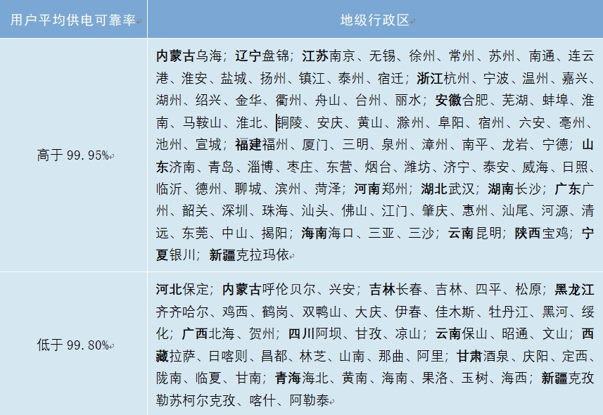 2023年,全國供電可靠性仍然呈現不均衡態(tài)勢,333個地級行政區(qū)中,91個的平均供電可靠率高于99.95%,47個地級行政區(qū)的用戶平均供電可靠率低于99.80%。