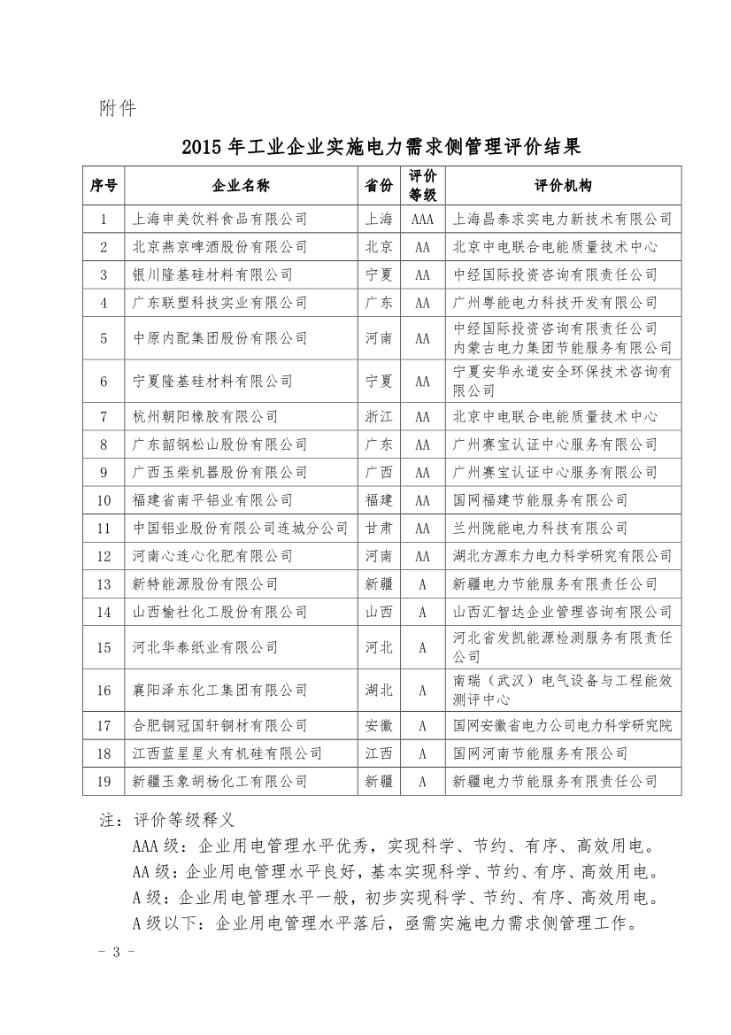 促進中心公布2015年工業(yè)企業(yè)實施電力需求側管理評價結果